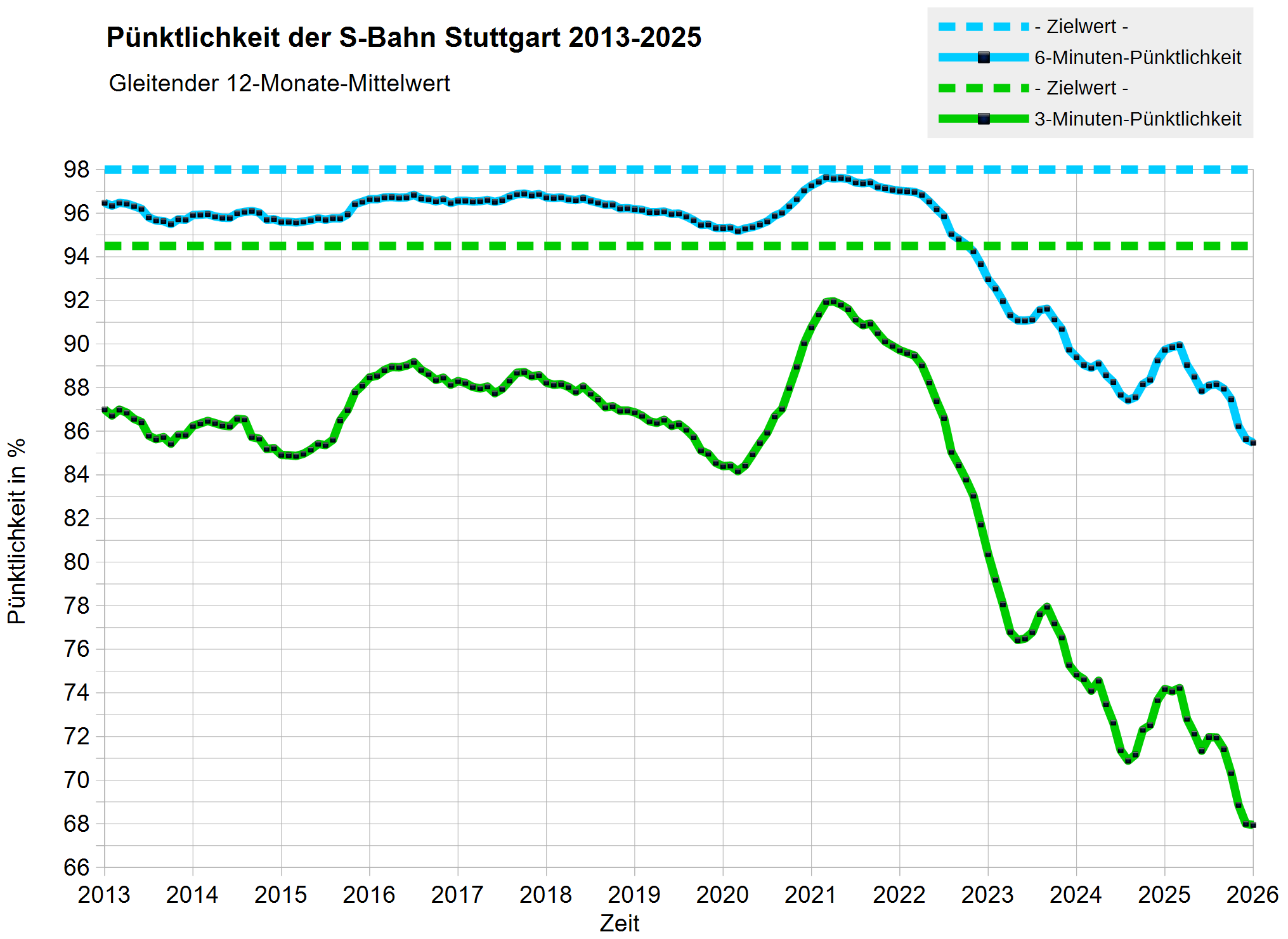 Die Realität der Stuttgarter S-Bahn sieht derzeit so aus: Immer schlechtere Pünktlichkeit und, ebenso häufig wie andauernd, irgendwelche Streckensperrungen teilweise mehrfach für die gleichen Streckenabschnitte. Dazu kommt eine geradezu paradoxe Terminsituation: Die Fertigstellung der Stuttgarter Megaprojekte Stuttgart 21 (S21) und Digitaler Knoten Stuttgart (DKS) befinde sich, so wird behauptet, auf der „Zielgeraden“, die Deutsche Bahn muss sich aber gleichzeitig mehr als ein halbes Jahr Zeit bis zu einer standfesten Aussage nehmen, ob, wann und in welchen Etappen man das Ziel wirklich erreichen wird. Der aktuell gefühlte Dauerzustand im Stuttgarter S-Bahnnetz ist Schienenersatzverkehr, dessen Abkürzung SEV gute Chancen hätte, in Stuttgart zur Abkürzung des Jahres gewählt zu werden. Und anscheinend wird es 2027 noch erheblich mehr SEV geben wie 2025 oder 2026.